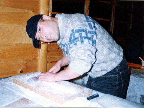 ▲自分でそばを打ってもらいます。